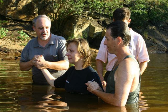 Marcos and Marlei, husband helping baptise his wife! |